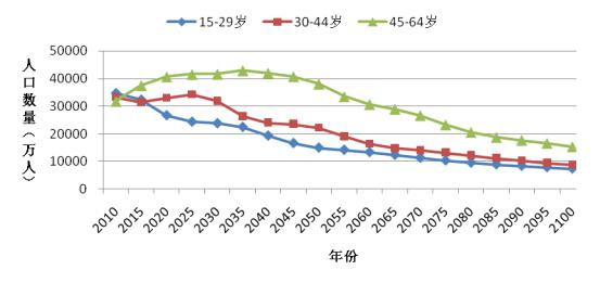 图2 联合国人口预测(低方案)未来我国不同年龄段劳动年龄人口规模变化