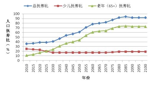 图3 联合国人口预测(低方案)未来我国人口抚养比变化