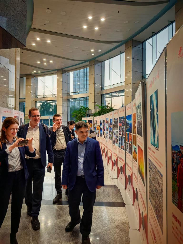 会后,恰逢“光影中国·礼赞‘十四五’”2025迎国庆主题图片展,黄汉权院长在国宏大厦一楼向代表团讲解了我国“十四五”发展取得的部分成就。比方对此次会议安排表示高度赞扬与感谢,会议取得了良好的沟通效果。