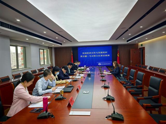 宋葛龙副院长代表我院对马吉特主任的来访表示欢迎,并简要介绍我院参会专家。马吉特主任围绕我国的投资情况、房地产市场发展、以旧换新政策成效、高技术产业对经济增长贡献,以及整治“内卷式”竞争等方面提出问题,我院专家作了详尽解读,双方就一些经济指标的界定、算法开展学术探讨。随后,我院专家围绕OECD国家促消费政策与人工智能政策等问题与马吉特主任进行交流。